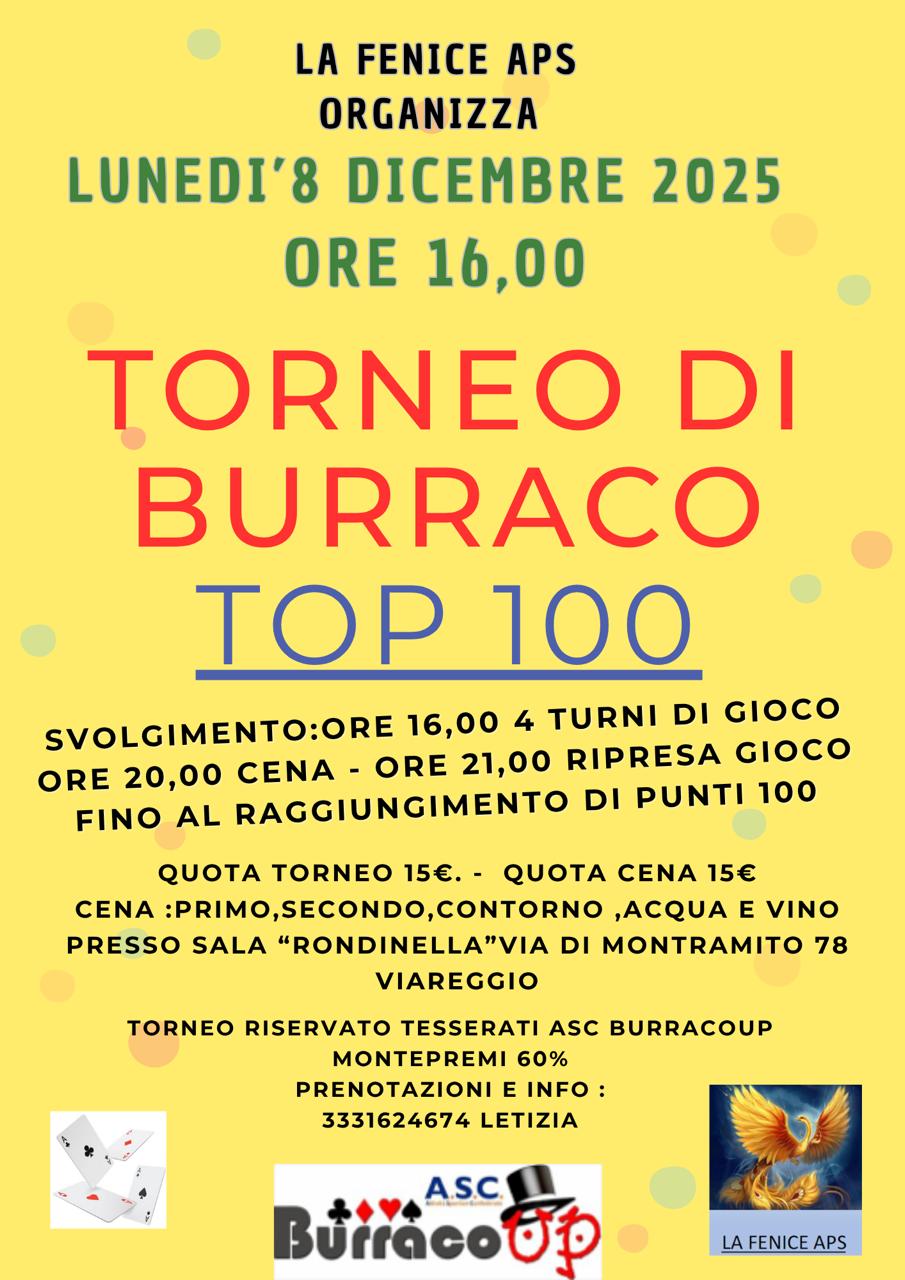 LUNEDI' 8 DICEMBRE ORE 16,00c/o CIRCOLO RONDINELLA via di Montramito 78 VIAREGGIO (LU)